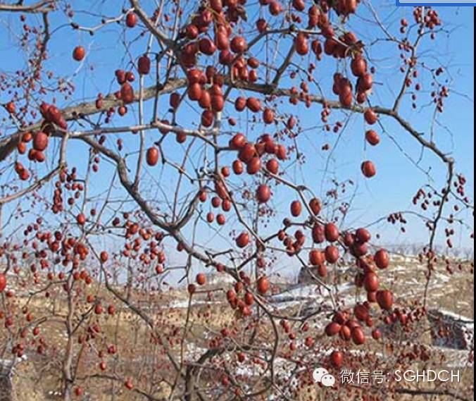 有的树上挂满了枣,却鲜有人来采摘,熬过了一个冬季,他们还没掉落,这些枣也在坚强的期盼