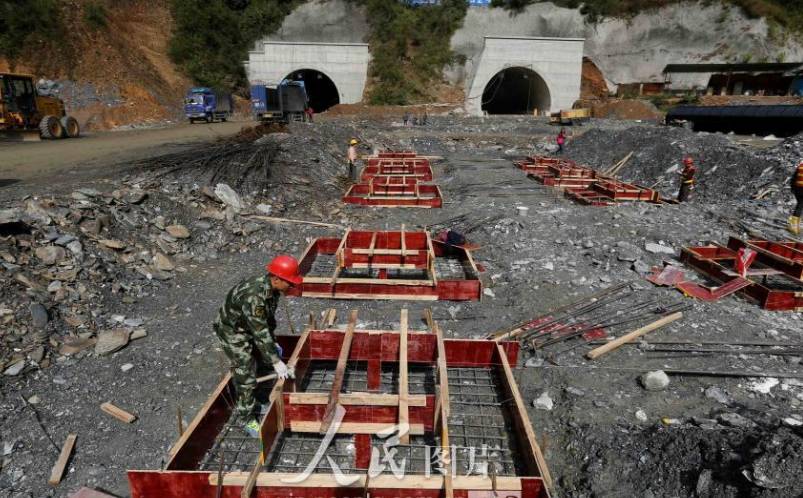 11月11日,在三柳高速施工工地,工人们在隧道口施工作业。