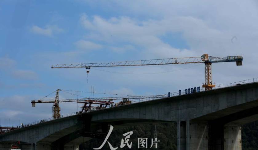 11月11日,在三柳高速公路施工工地,大型工程机械在进行吊装作业。
