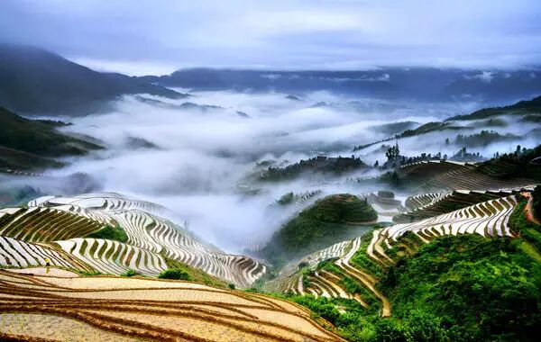 上榜理由:龙脊梯田,是国家AAAA级景区,广西二十个一级景点之一,位于广西龙胜各族自治县龙脊镇平安村龙脊山,距县城22公里。龙脊梯田整齐有序,线条丰富多彩,线条形状以曲线为主,曲线赋于人们一种动态美,尤其是那些长长的曲线和波浪线,使人联想到这些梯田好像是天上飘落的彩带。