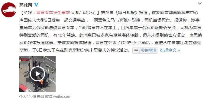 9月7日,一条题为《普京专车发生事故,司机当场死亡》引起了众人的关注,有消息称据俄罗斯媒体透露,近日,莫斯科市中心发生一起车祸事故,一辆黑色宝马与奔驰车对撞,司机当场死亡。涉事宝马车为俄罗斯总统普京的专车,当时普京并不在车上。