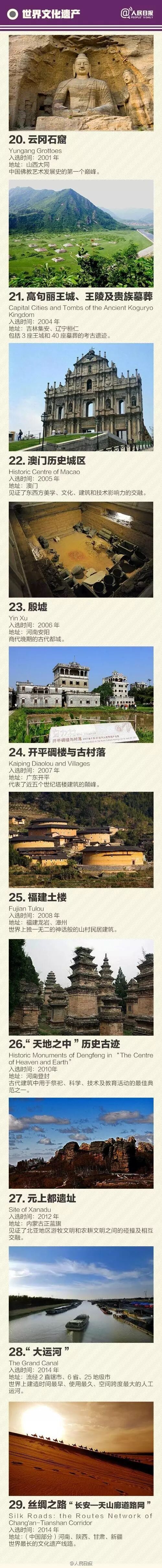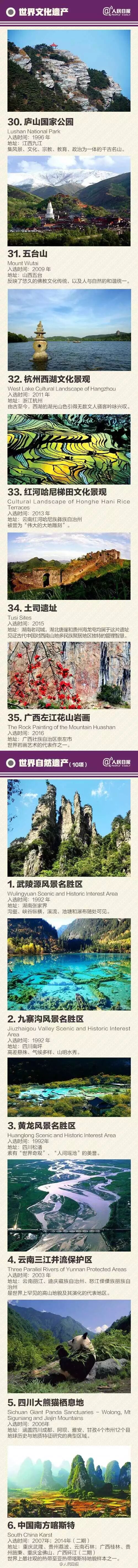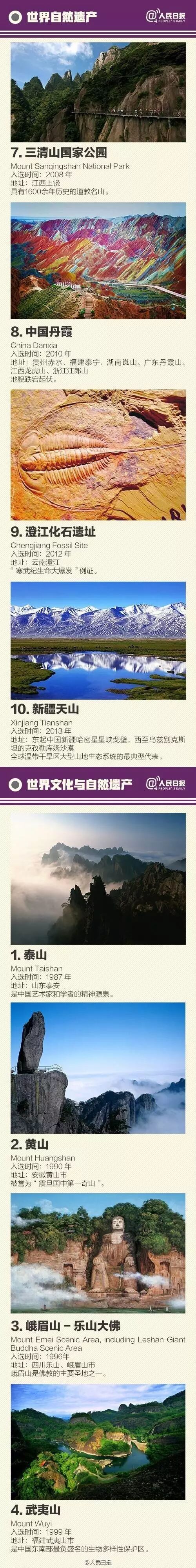 ,分别被列入世界文化遗产名录和世界自然遗产名录,中国的世界遗产数量增加至50项,仅次于意大利,位列世界第二。