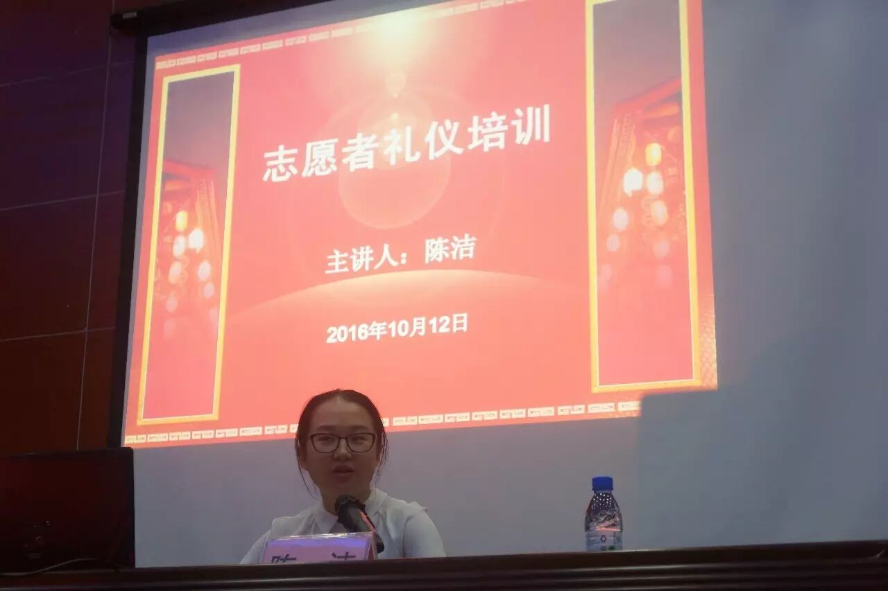 陈洁老师为志愿者讲授“志愿者服务礼仪”
