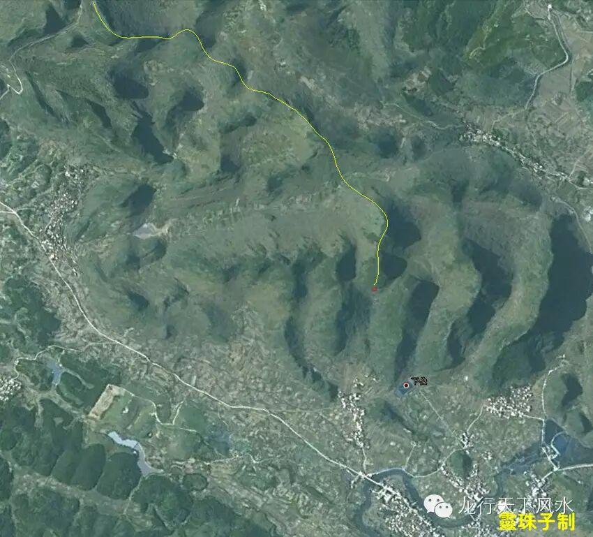 红圈处为王家坟,人工砌拜台在石唇余气上。