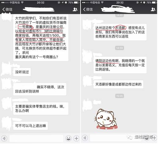 今年春节没在县城待,昨天同学群聊后查资料,把几个小事串在了一起:前阵子不少朋友咨询免费购物全额返积分靠不靠谱,年前一个表舅热心推销投资1万能赚2两万的好商机,以为是些小骗子简单劝阻都没细究,却没想到这些都源起于一个正在神州三四线城市蔓延的庞氏骗局:购物返现,下面是聊天截图。