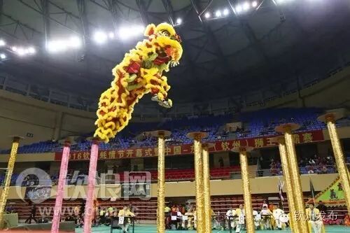 醒狮踩高桩,艺高胆大赢得现场阵阵掌声 钦州日报记者 敖帅昌 摄