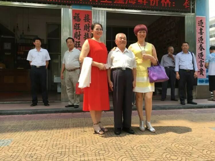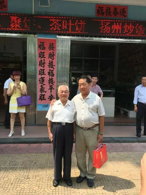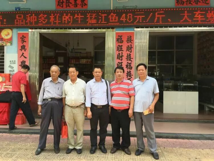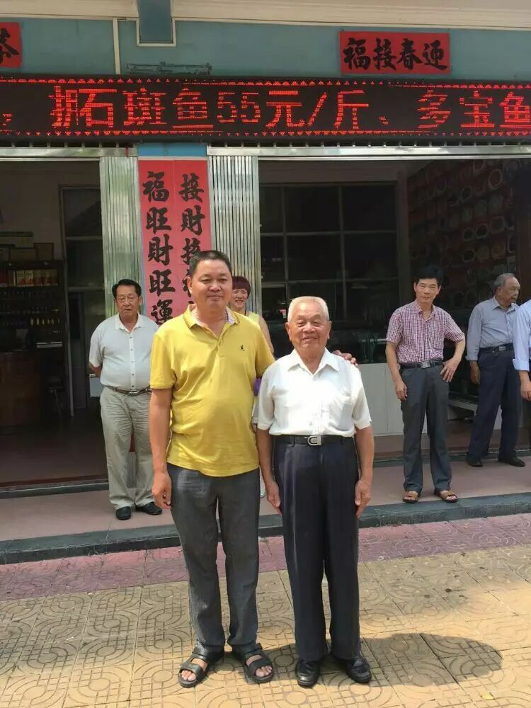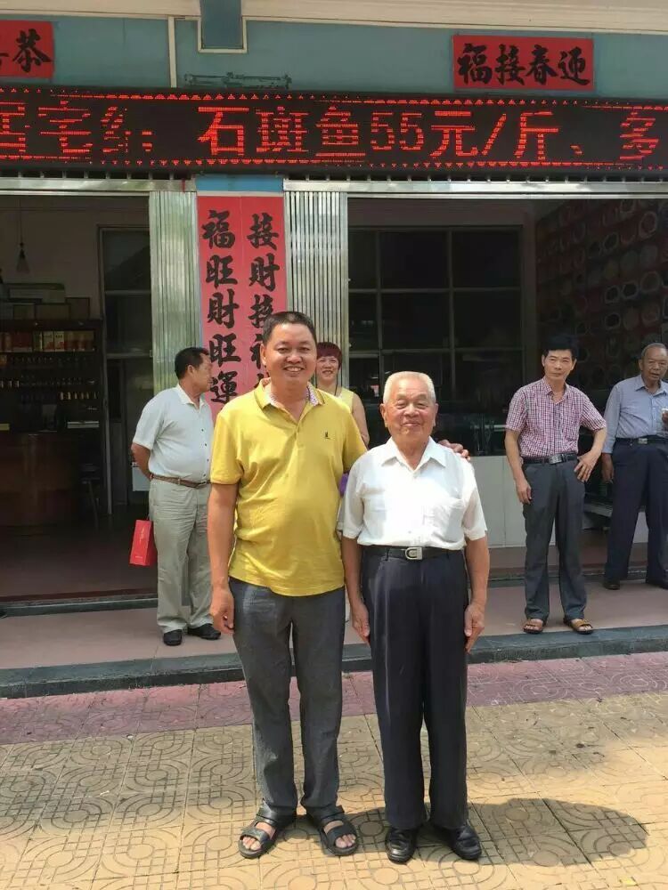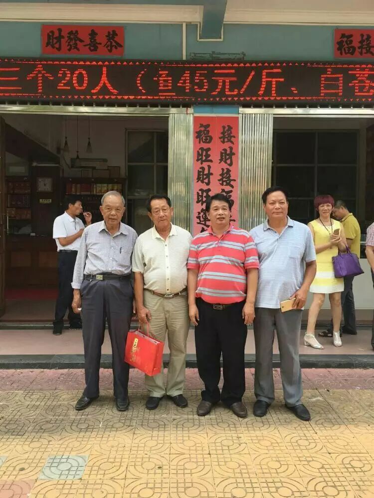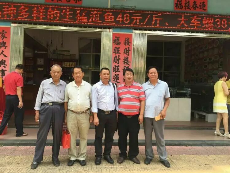 北海邓氏海产品有有限公司董事长邓凤与姐姐邓燕与九十岁名誉会长邓天冒合影