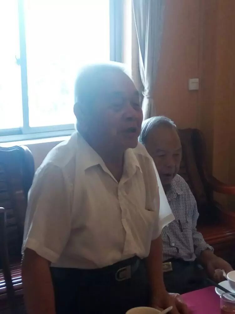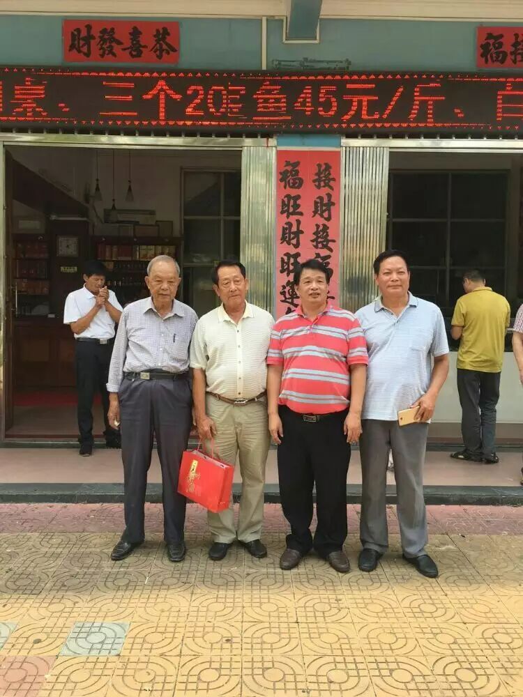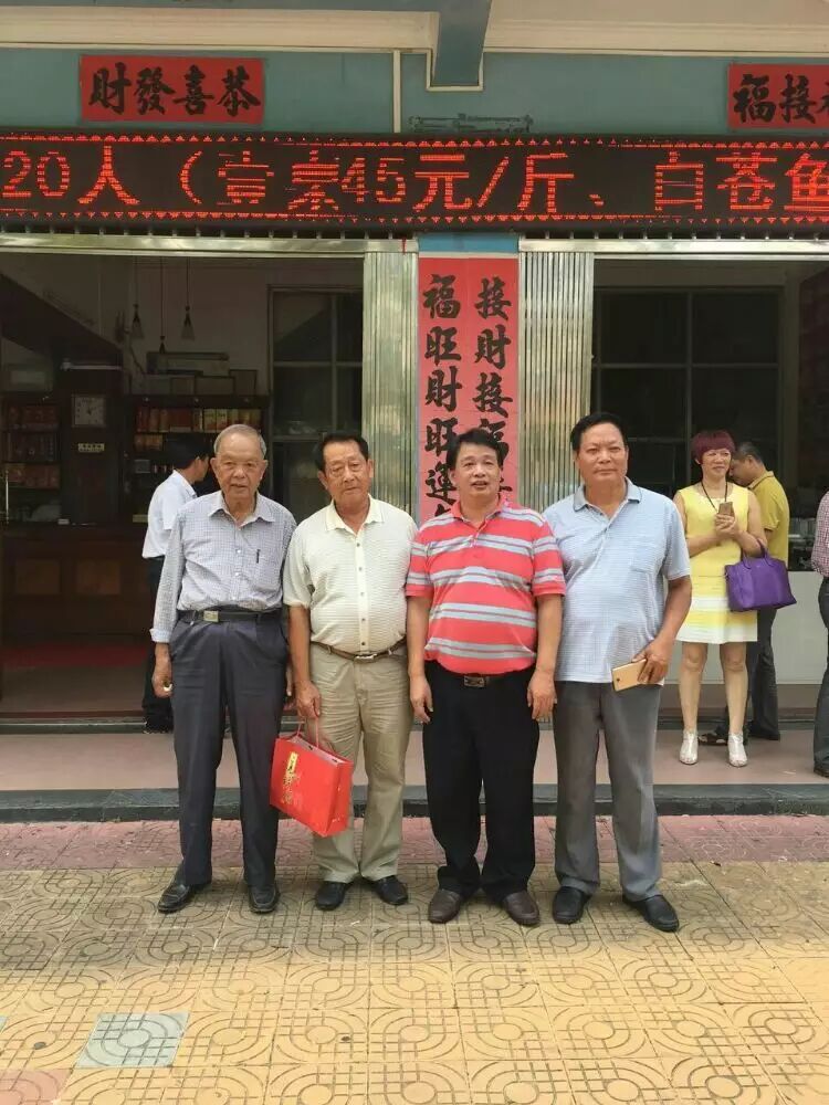 两地宗亲联谊合影!,副会长邓长江,付会长邓亚金等一行五人,在广西钦州、防城港市与两地宗亲联谊后,不不怕辛苦又继续赶回北海与广西北海合浦宗亲会联谊…北海合浦宗亲会长邓允炬、常务副会长邓图金、付会长邓人铭、邓李广、邓邓凤、邓李清、常务理事邓燕、邓国源、,在北海合浦山口餐厅接待他们以及好互相交流文化,今年九十岁的名誉会长邓天冒做了重要发言…并向北海合浦宗亲会赠送高州新洞族谱及中秋节礼物!