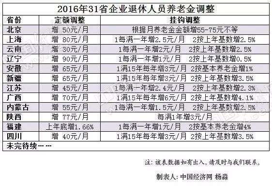 近日,随着江苏、安徽、广西等退休人员基本养老金调整方案出台,记者统计了31个省市养老金调整情况。据不完全统计,目前至少有12个省份公布上调养老金,同时,很多地区的养老金总体水平超过6.5%。