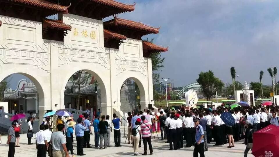 园博会开幕式在上午9点举行,然后是14个城市展园的开园仪式。不过上午园博园是不对公众开放的。公众免费开放时间是7月23日15:00至8月22日,每天开园时间为9:00-21:00。