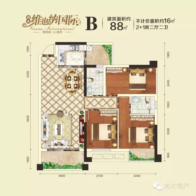 户型紧凑合理,干湿分离,呈现健康生活;