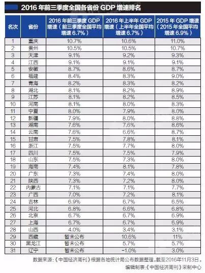 榜单显示,排在前两位的重庆、贵州前三季度GDP增速分别达到10.7%和10.5%。其中重庆比上半年增速高了0.1个百分点,贵州增速与上半年持平。