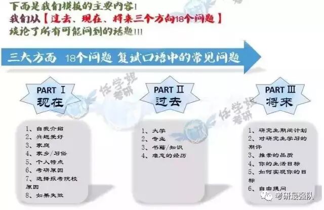 /我们涵盖了三大方向18个常考问题,几乎囊括所有复试口语问题。