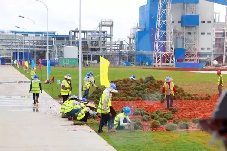 在施工期间,小编曾进入过项目的现场,《遇见北海》也作过相关报道。今天这次跟着媒体采访团重访,发现变化超大:原来的荒山野岭,建成了一座漂亮的现代工业重地。里面道路很平整,漂亮起来了。工人们在加强绿化工作。听说,下一步,还将种植起高大的风景树。