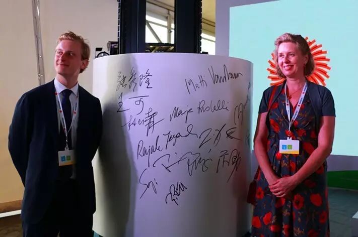 (图为与会人员兴高采烈在签名上合影)