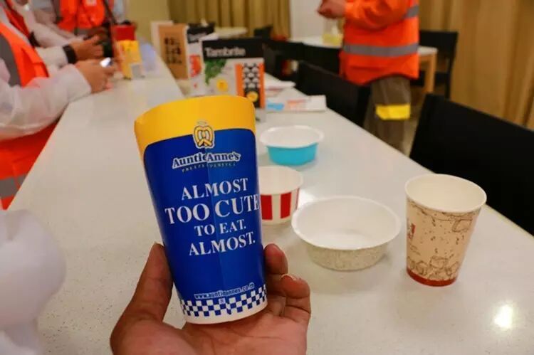 最后,记者们终于见到了部份的液态、食品,药品及奢侈品外包装的设计及实体产品。小编拿起一只好像是咖啡(不敢确定,因为我英文差)纸杯,把玩了一下,感觉与一般的纸杯不一样,稍重了些。