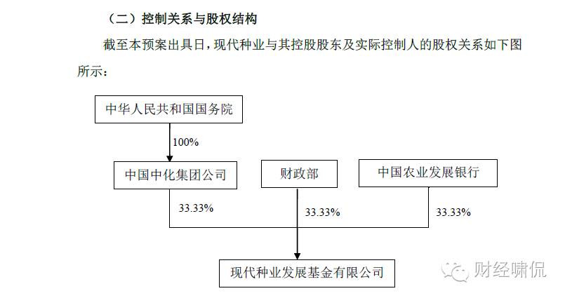 至于现代种业发展基金有限公司,股东分别为财政部、中国农业发展银行和中国中化集团公司(下称“中化集团”),三者持股比例都为33.33%左右。财政部身影再次现身!