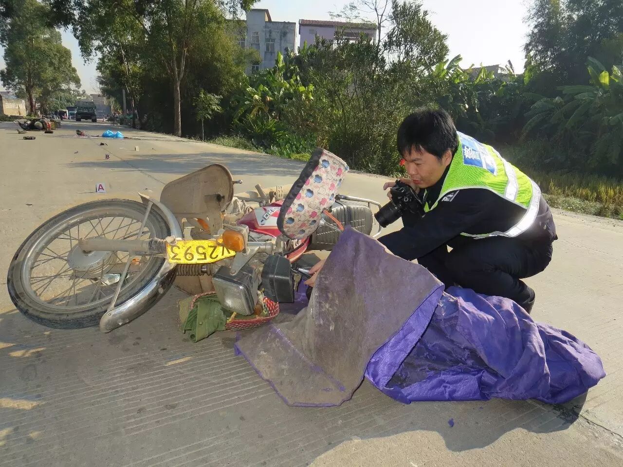 杨有宁牢记工作职责和使命,时刻提醒自己在法医工作中做到科学、客观、公正、严谨。2014年10月28日20时许,贵港市港南区东津镇发生一起蹊跷死亡交通事故,一辆摩托车飞进路外三十米的稻田里,路上除了倒地的摩托车驾乘人员外没有任何痕迹和车辆碎片,主办民警和法医初步判断为单方事故。案发后第四天,杨有宁获悉案情,敏感察觉了诸多疑点。为了印证想法,他主动查阅案件材料,再次对尸体进行全面细致的检验,确定死者致命损伤系重物以一定的速度打击形成,并不是单纯的摔跌所致。同时,杨有宁还在死者头面部创口内发现了极其微量的蓝色油漆粉末,证实,这是一起重大交通肇事逃逸案,肇事车辆应为中型以上蓝色货车。大队立即召开案情分析会,杨有宁力排众议,及时纠正了主办民警对该案的定性,促使该案成功侦破。