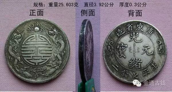 户部一两银币,楷书文字书法极为精湛、大气,间架结构平衡舒展,在龙洋里首屈一指。而赝品几乎是千篇一律的具有文字不流畅、图像模糊的特征,其文字走失风神,一般含银量低,也没有什么锈色包浆,防伪暗记更是无从谈起!赝品纯属东施效颦。