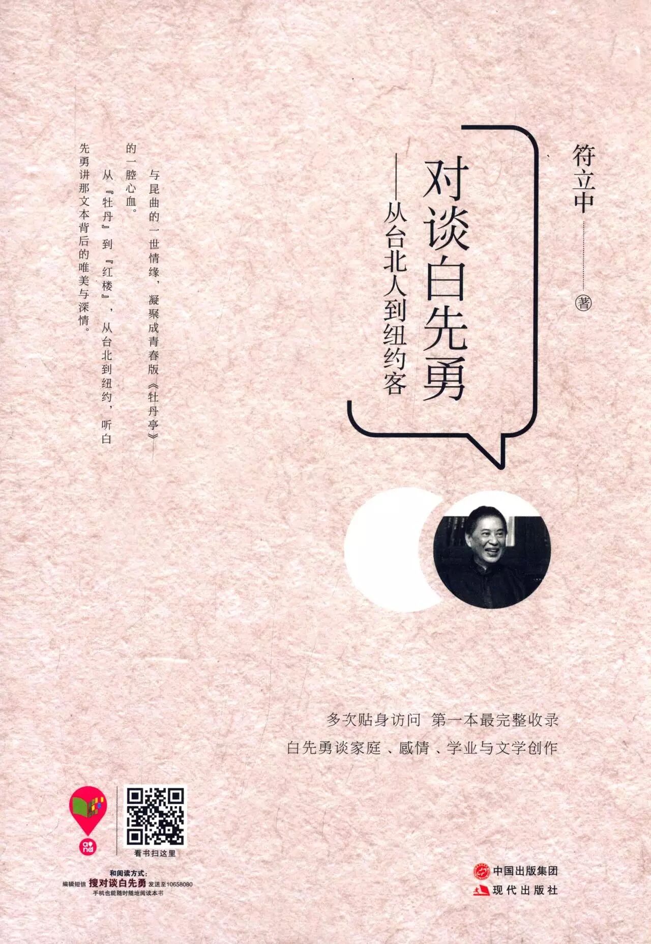 内容简介:这是一本完整收录白先勇谈家庭、感情、学业与文学创作的对话录。作者曾多次亲访白先勇,一问一答间,循着从台北人到纽约客的足迹,精准呈现了白先勇在文学、昆曲、电影领域的艺术成就,文笔细腻,触动人心。