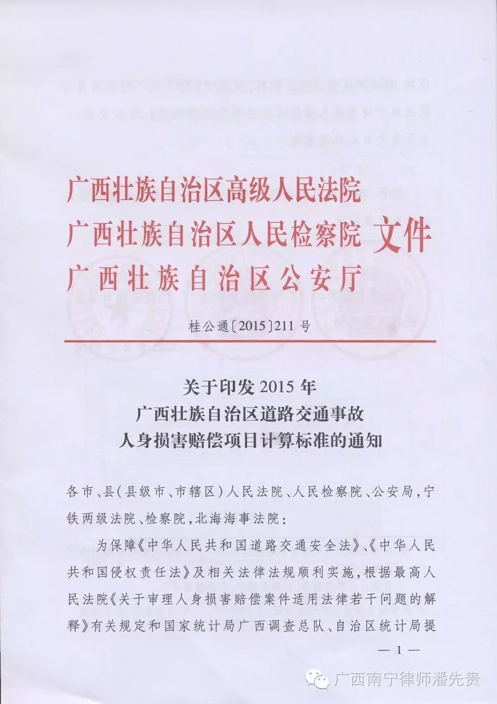 近日,广西公布了“交通事故人身损害赔偿赔偿标准”: