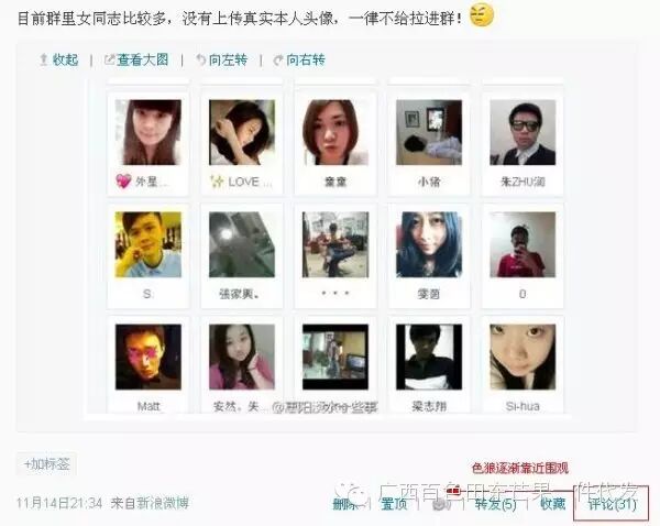此时色狼光棍一哄而上,有200人左右加微信进群。无疑,这完全就是一个人性的营销点了,大量男性用户的好色、爱把妹的需求得到满足,不过前提是你得进微信群,不然这就都是别人家的妹子!