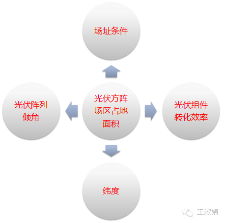 以固定式的安装方式为例, “光伏方阵场区”的占地面积,受4个因素的影响,如下图。