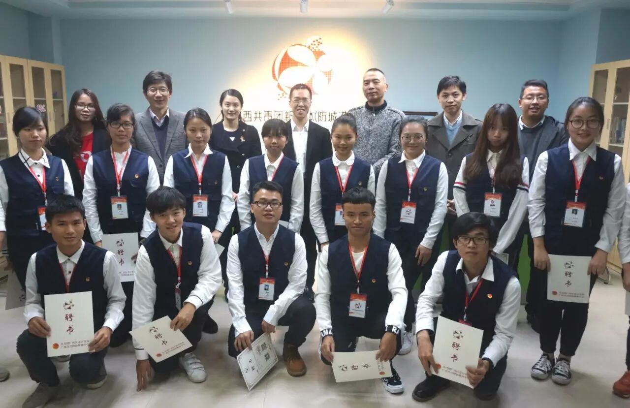 广西区委副书记刘玄启,广西区委宣传部部长谢建伟,广西财经学院防城港学院党总支书记严民富、团防城港市委副书记罗敏以及团干部、老师、同学约100人参加了活动。