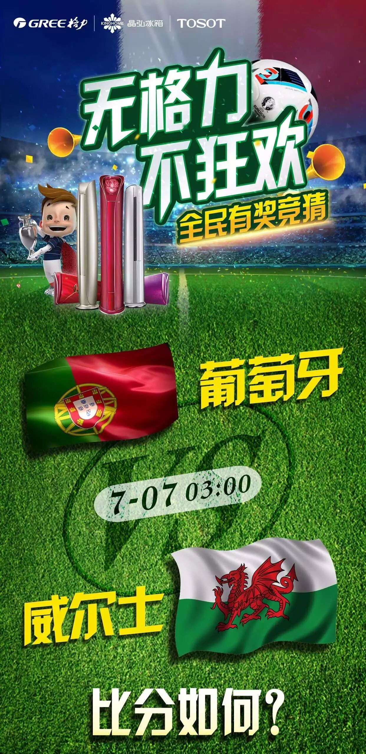3、比分竞猜以常规时间+加时内比分为评判标准。若能额外猜中点球比分的粉丝,可再加送一份奖品;