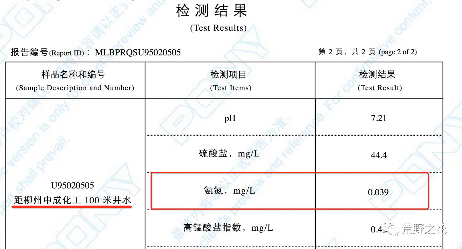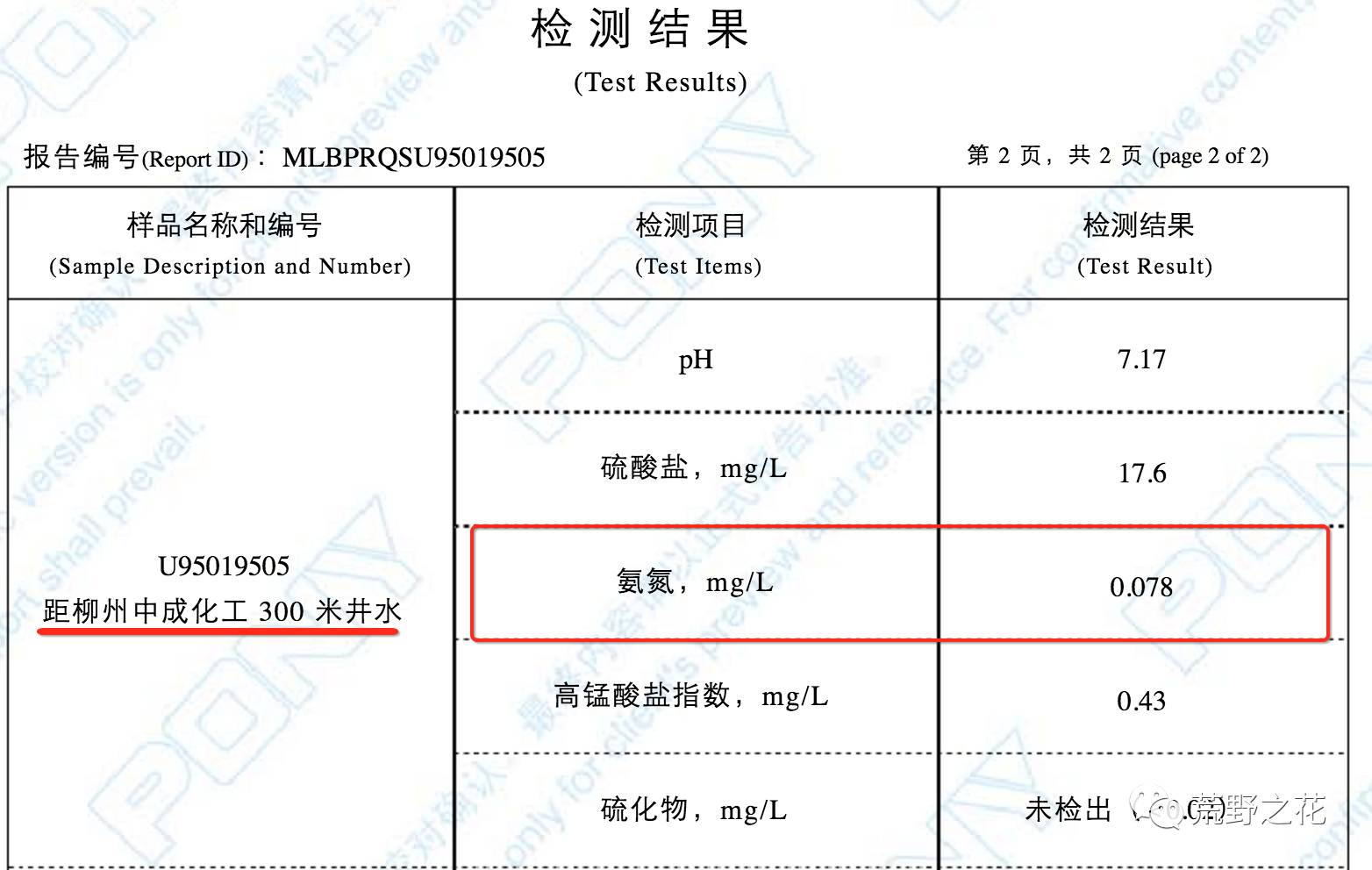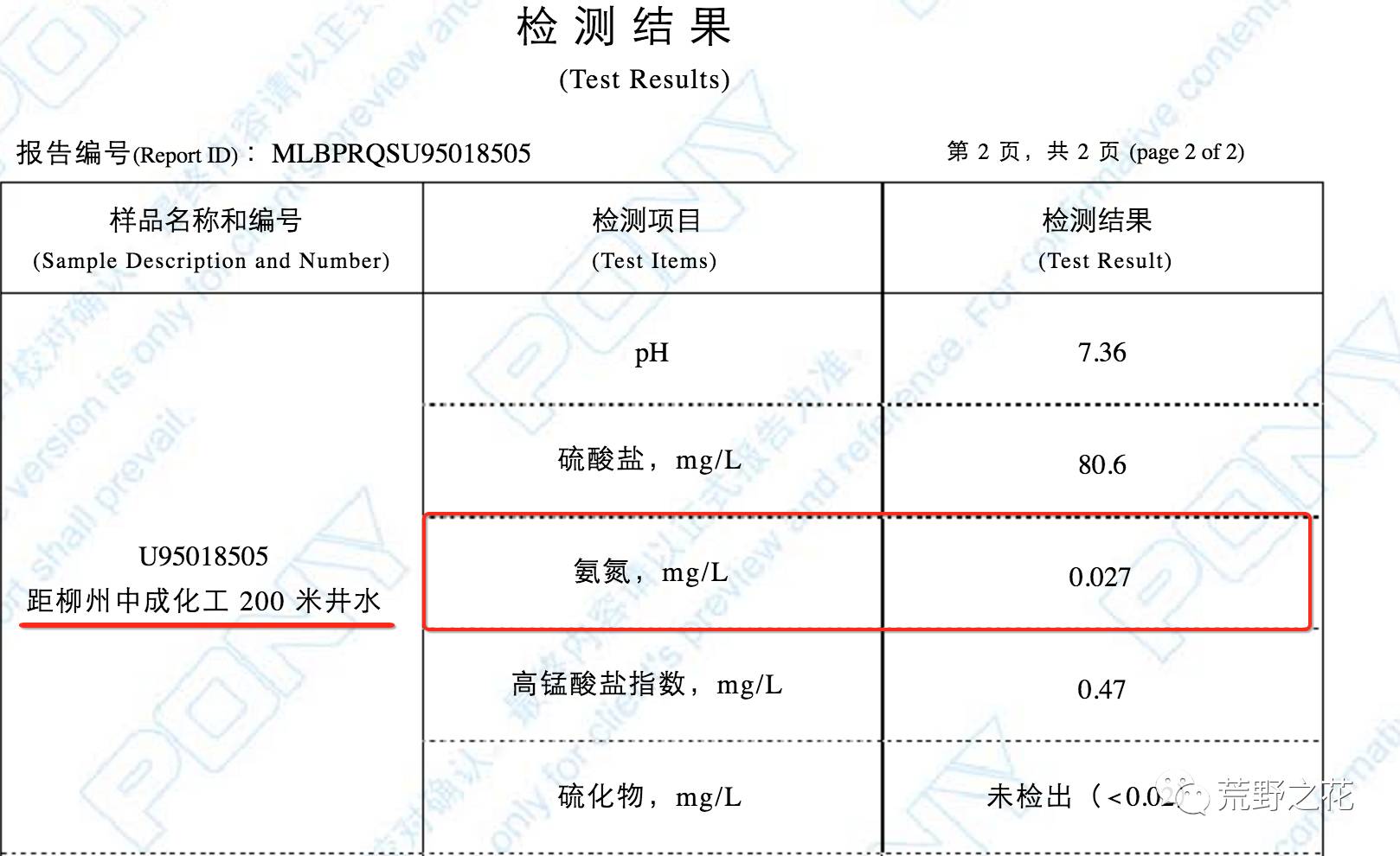 可怕的是,第三方的检测结果显示,二坪屯村的三处取样水井,氨氮都超标(标准为不得超过0.02mg/L)。