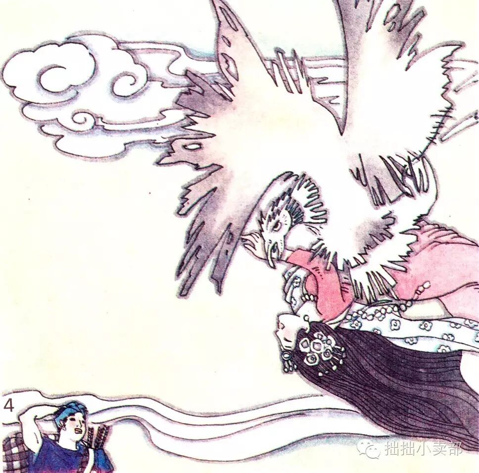 石生四处流浪。一日,忽见一只大乌鸦抓着一位姑娘从头上飞过。他一箭射去,乌鸦受伤,洒血逃去。