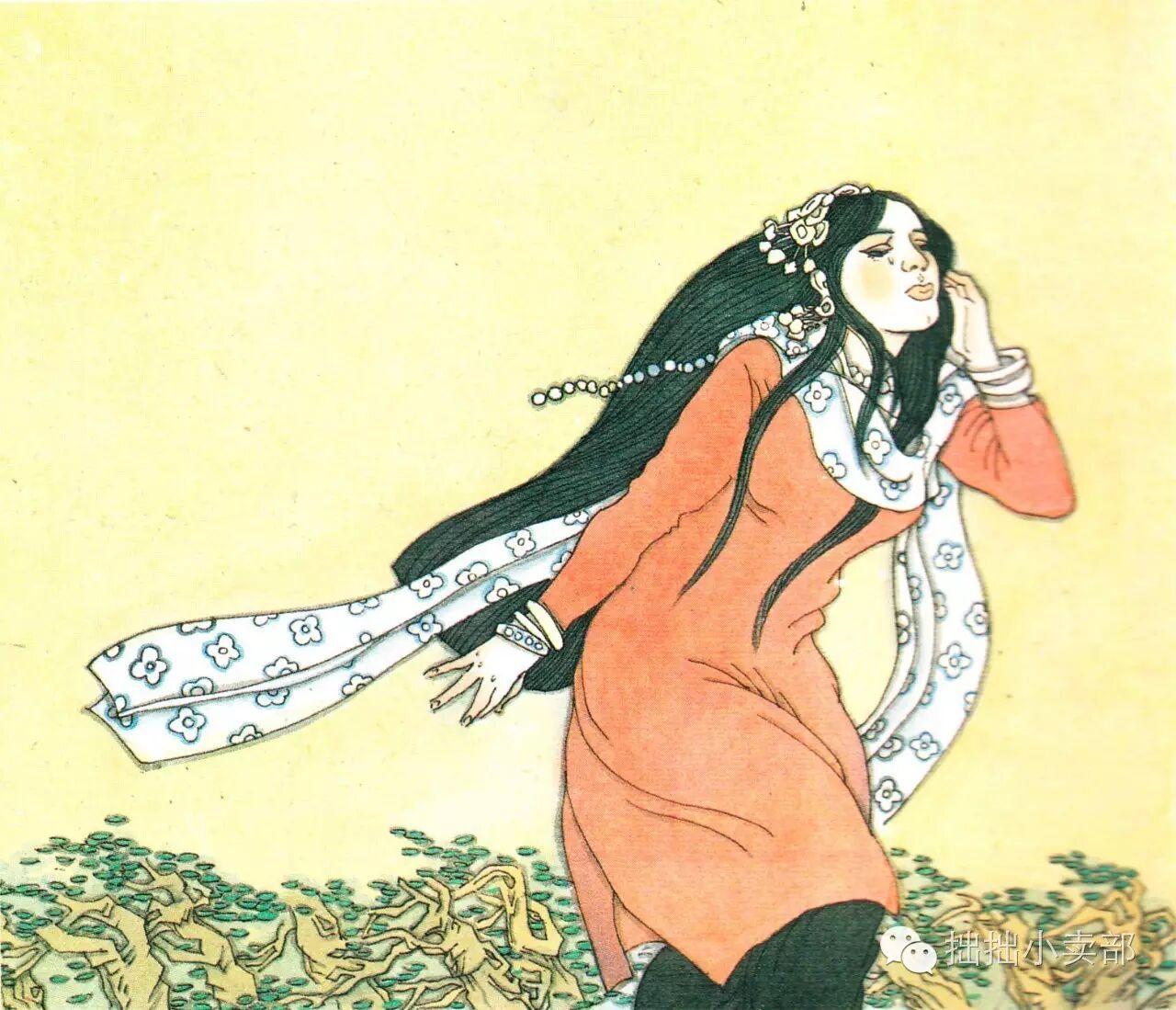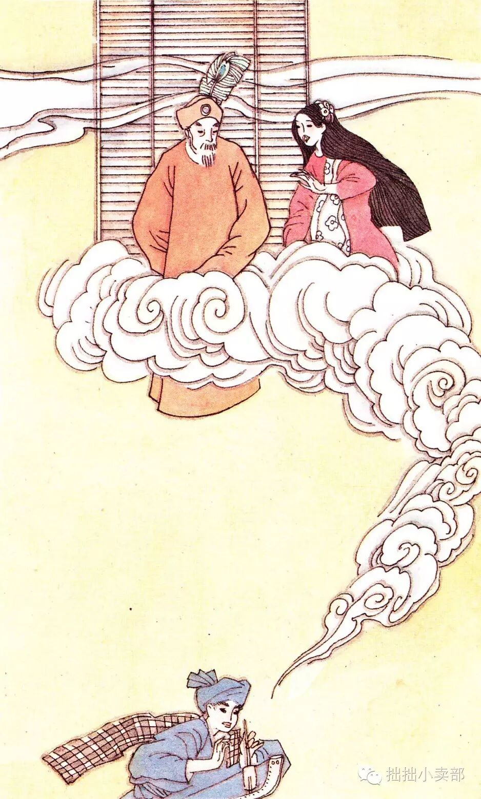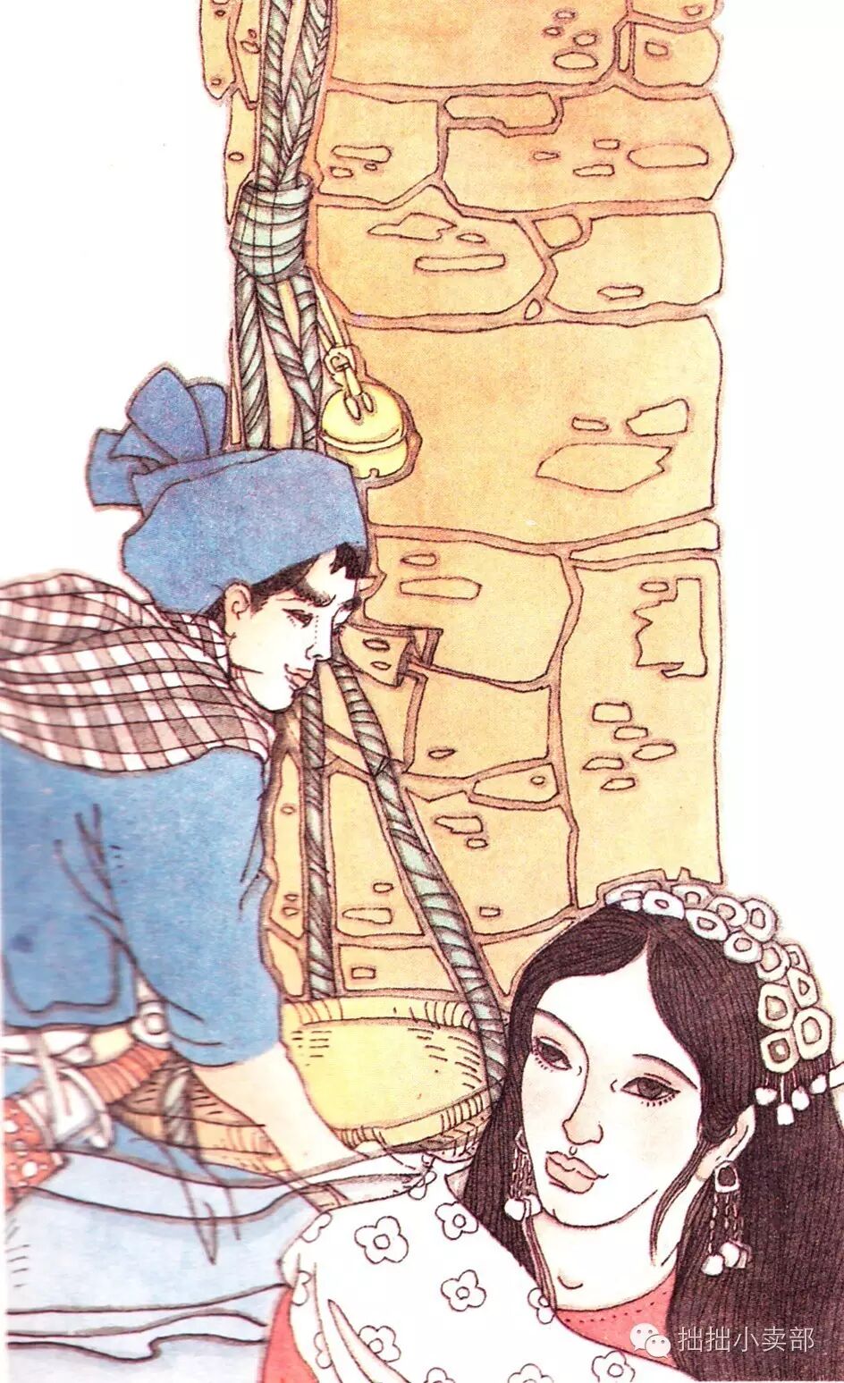 他们来到井口下,石生将公主放入竹萝,摇起了铜铃。