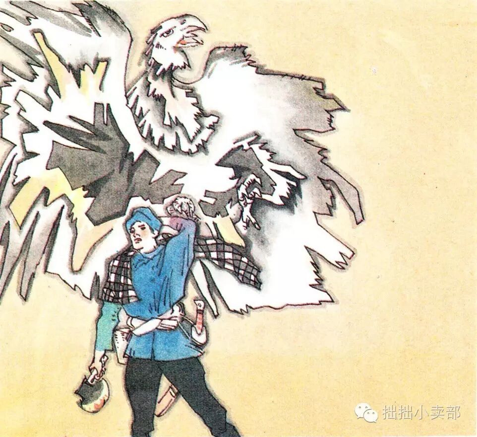 这是,被石生射伤的乌鸦突然向石生扑来。石生挥斧砍伤乌鸦,乌鸦哀求饶命。