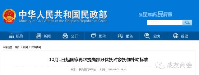 经研究,决定从2016年10月1日起调整部分优抚对象等人员抚恤和生活补助标准,现就有关问题通知如下: