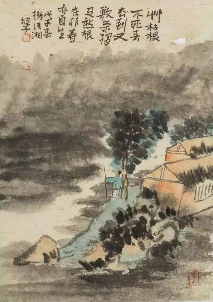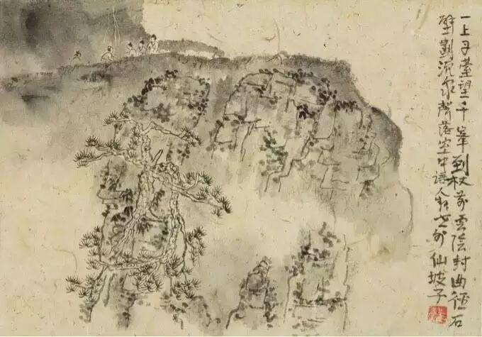 石涛亦怀古,或诗或画,借以咏怀,那不是简单的故国情思。与四僧中其他人不同,石涛似乎对故国沦丧看得很坦然,他心中,天地宇宙的轮回一定重于道统的延续,虽然,有着纯正皇室血统的他,是朱元璋哥哥的后代,靖江王孙。怀古,伤逝,是面对“逝者如斯夫”的无奈,是千古诗人共有的情思,石涛的怀古,如同王粲的登楼作赋,如同老杜的咏怀古迹。