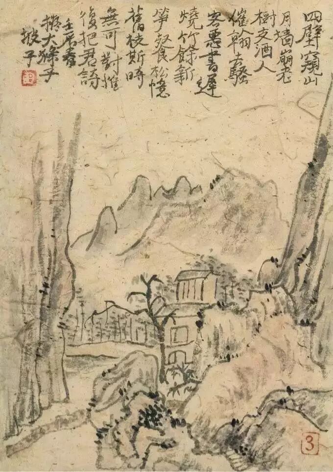 石涛学古,亦不避时贤。长石涛三十六岁的程邃,渴笔山水,古今一人,老辣生拙,格调极高,石涛的同类山水,终其一生,一直有着程穆倩的影响。梅清长石涛十七岁,石涛于瞿山公,是亦师亦友的典范,感情极深,石涛画细笔山水,尤其是早期的黄山册页,梅清对他的影响有迹可寻。