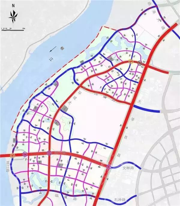 (江滨片道路系统规划图)