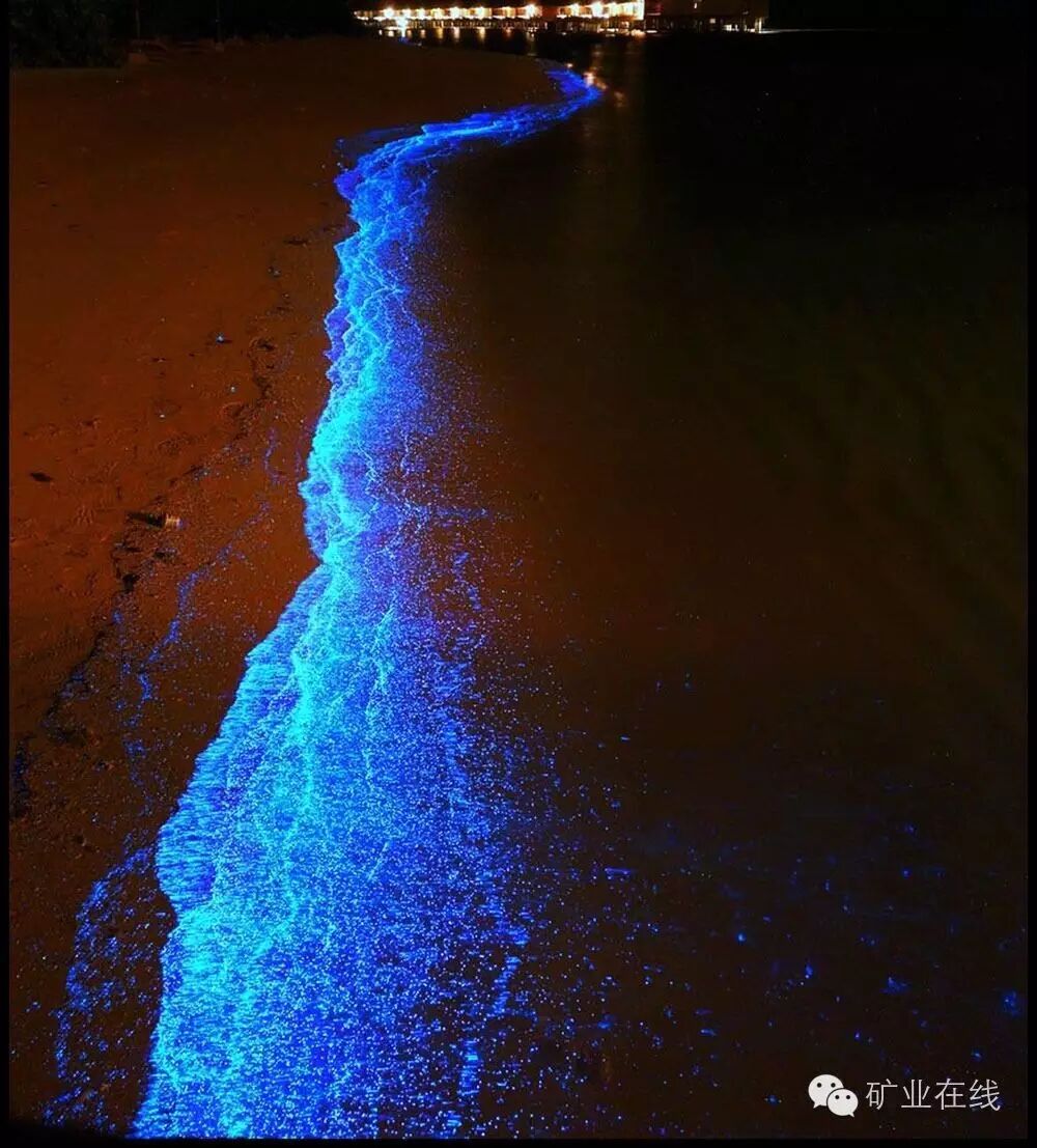 这个海滩的蓝色是有生活在这里的浮游生物引起的。