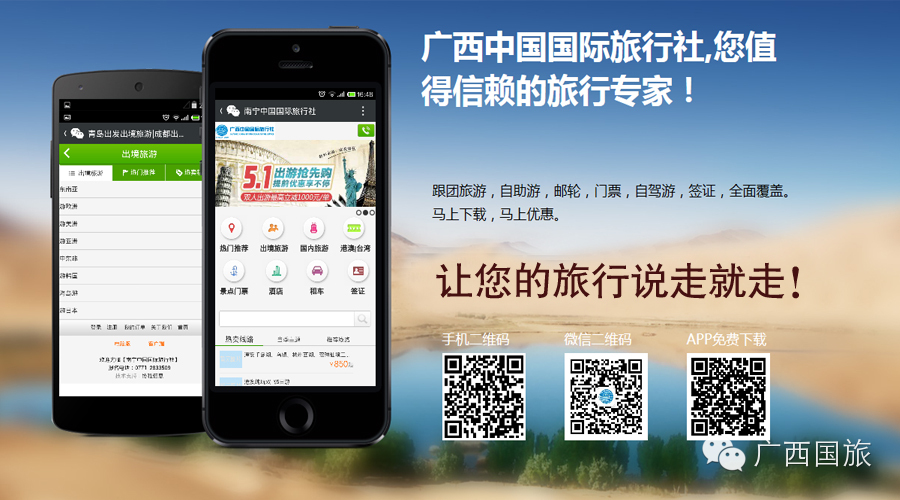 更多旅游行程信息及其他服务请联系广西国旅各门市部,您也可以移步至就近门市咨询或报名哦~