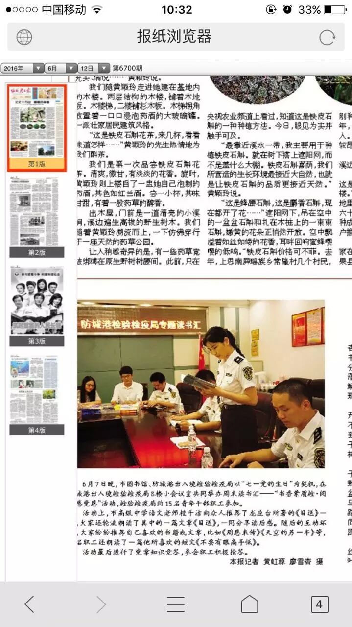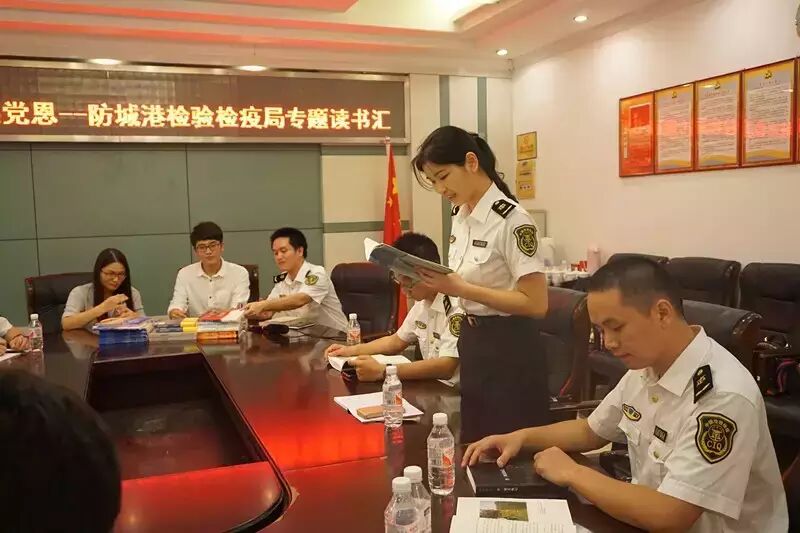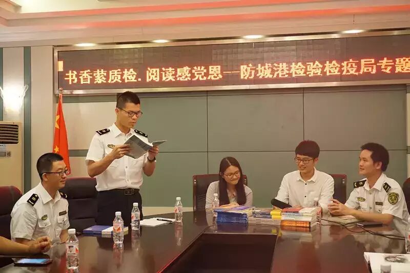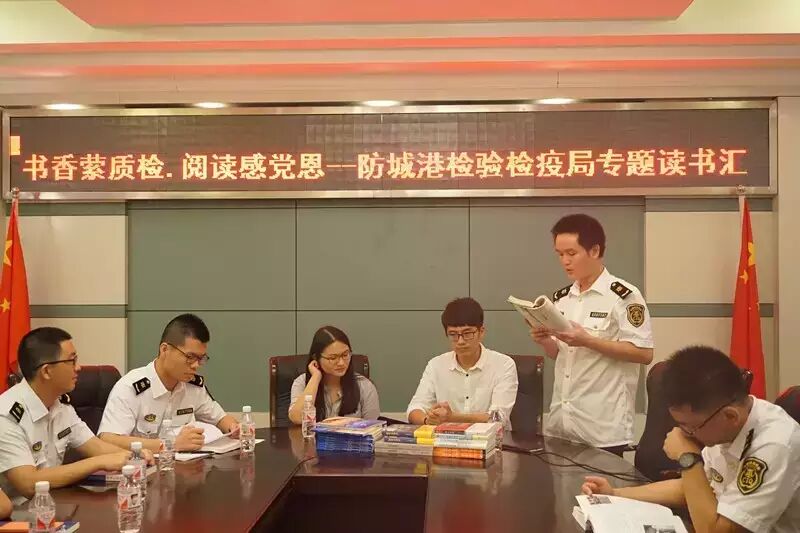 ,响应国家“倡导全民阅读 . 建设书香社会”号召,防城港检验检疫局联合当地有关部门开展以“强素质、树形象”为主题的“书香质检”阅读活动,邀请防城港市高级中学语文老师桂千洁、防城港市电视台主持人潇寒向该局党员青年分享读书心得。