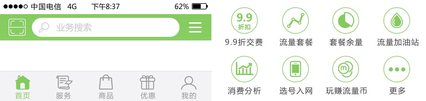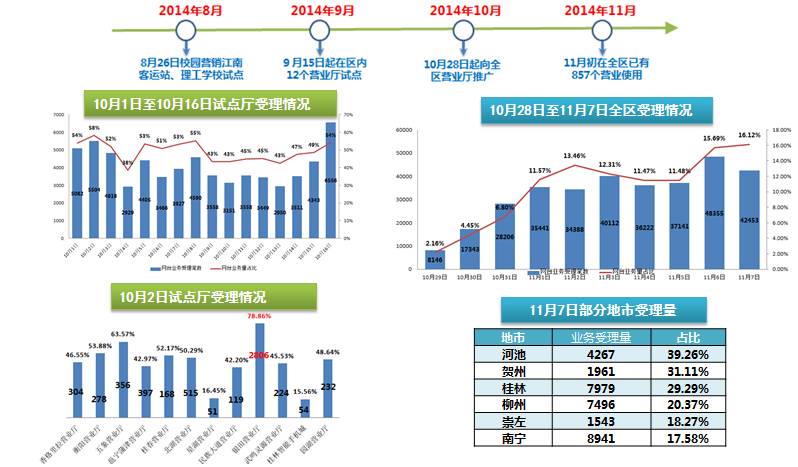 广西网台合一是中国移动首创互联网化的交互界面设计。从实际效果来看,通过互联网化设计,提升了用户体验,简化了操作流程,缩短了培训时间;以业务受理为例,通过UIUE设计,使常用业务的界面数减少了43%;点击次数下降了38%;办理时长缩短了42%,业务办理效率得到了大幅的提高,改进效果显著。