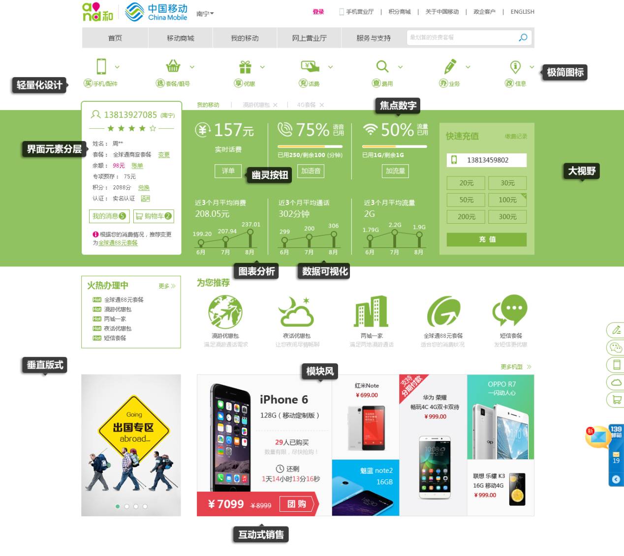 亚信为中国移动实施的众多项目中,广西移动网台合一在UIUE设计方面,可谓典型案例。具体体现如下: