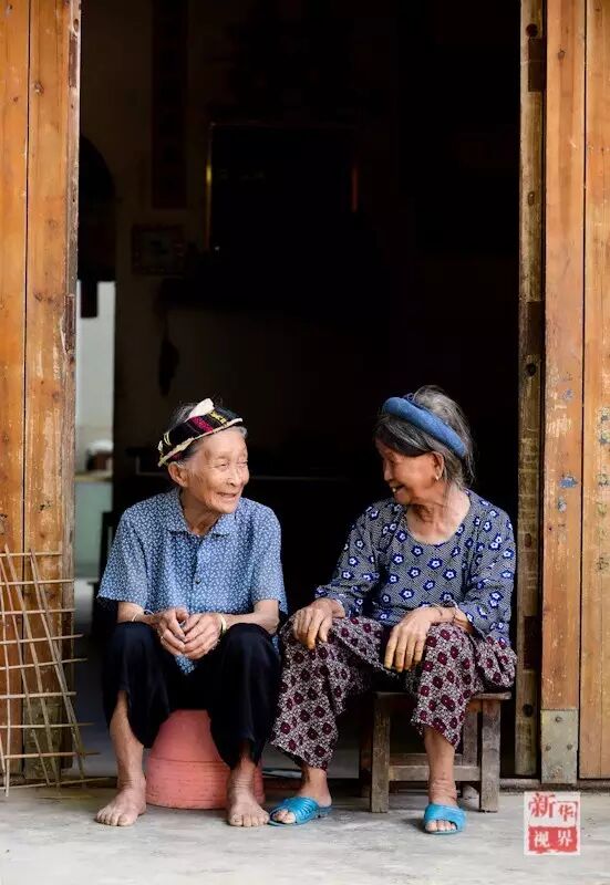 △88岁的村民陈颜理(左)和86岁的农美丰在聊天。