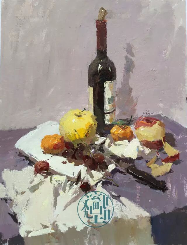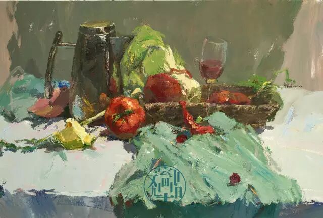 2.色彩关系准确,有明确的色调意识和良好的色感,符合静物的构图原理、画面均衡,色彩对比及调和关系明确,画面整体具有韵律和节奏感;