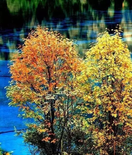 九寨沟的秋无疑是最美的秋,缤纷色彩在秋意融融中凸现,秋日的海子层林尽染,红叶黄叶遍布山野,幽蓝湖水如诗如画,偶过清风,宁静的湖面荡起层层涟漪。秋天里的九寨沟,就如此般五彩斑斓宛若仙境。
