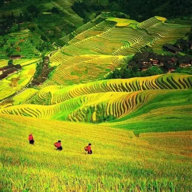 每年的金色秋收时节,广西龙脊梯田便呈现出惊心动魄的震撼美,只疑身在画卷之中,飞临仙境蓬莱。