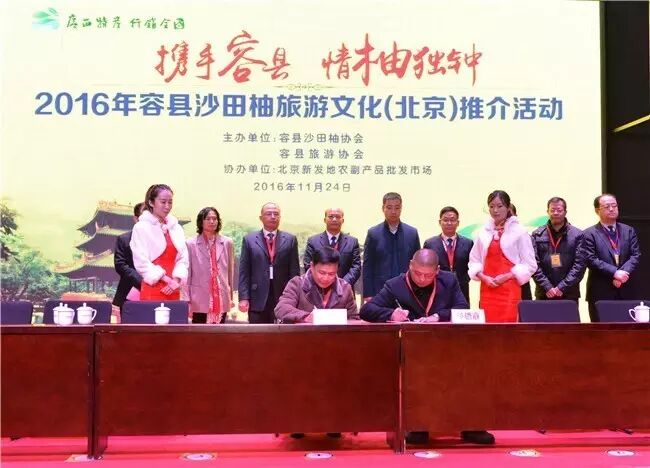 京城瑞雪美,容州柚果香。11月24日,2016年广西容县沙田柚旅游文化推介活动在北京新发地国际农产品会展中心举行。推介活动以“携手容县•情柚独钟”为主题,通过宣传推介、产品品鉴、文艺表演等多种形式,从不同角度推介沙田柚产业及容县特色旅游产品,通过沙田柚搭建友谊桥梁,吸引更多国内外人士关注容县、走进容县、感受魅力容县。