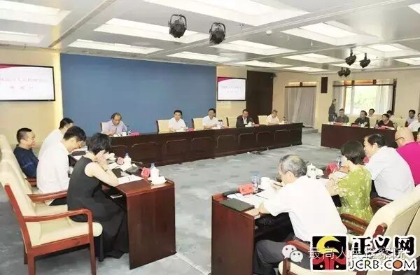 最高检党组成员、,中国检察官文联主席王少峰主持座谈会。