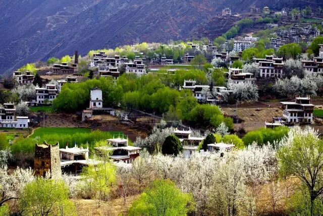 每年清明节前后,万亩梨花竞相绽放,真可谓是“丹巴梨花盛开时,一夜春风醉川西”。