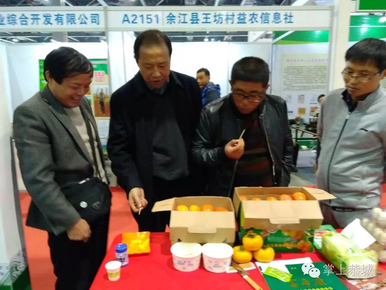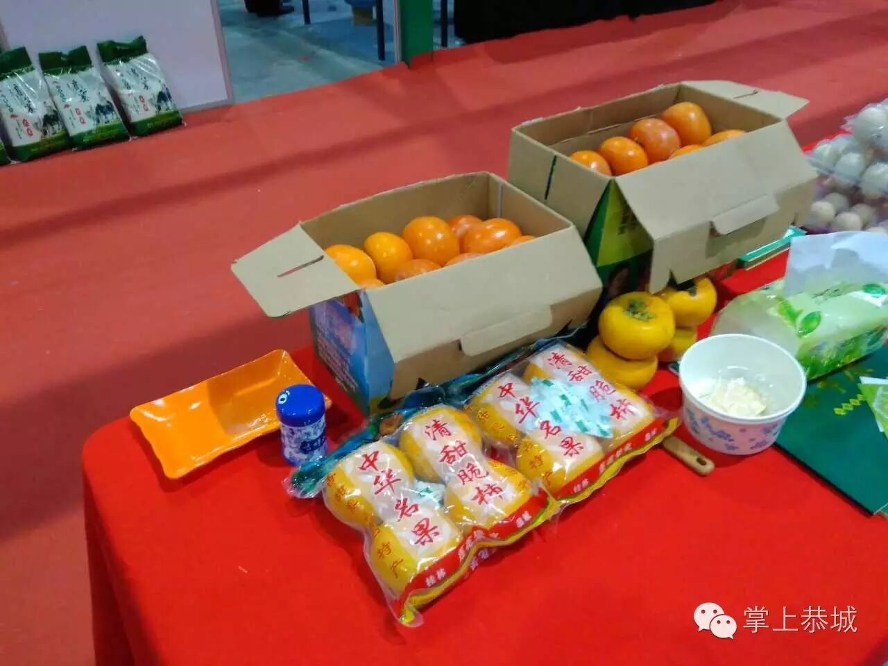 恭城县西岭镇费村的一位果农,在南昌参加第九届中国绿色食品博览会时,把恭城的脆柿也带到了展览会上,让外地的朋友吃了到了恭城味道。他说虽然自己在九江与人承包了500亩地种柿子,但是还是不忘恭城柿子,想让更多的人知道恭城。本来他还打算再带一些柿饼参展,无奈于之前的回南天,柿饼邮寄时怕影响饼质,只好等待下次机会了。